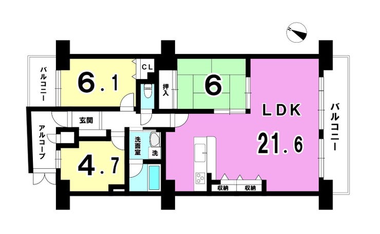 | 主要採光 | 南向 | バルコニー | 南向13.84㎡ |